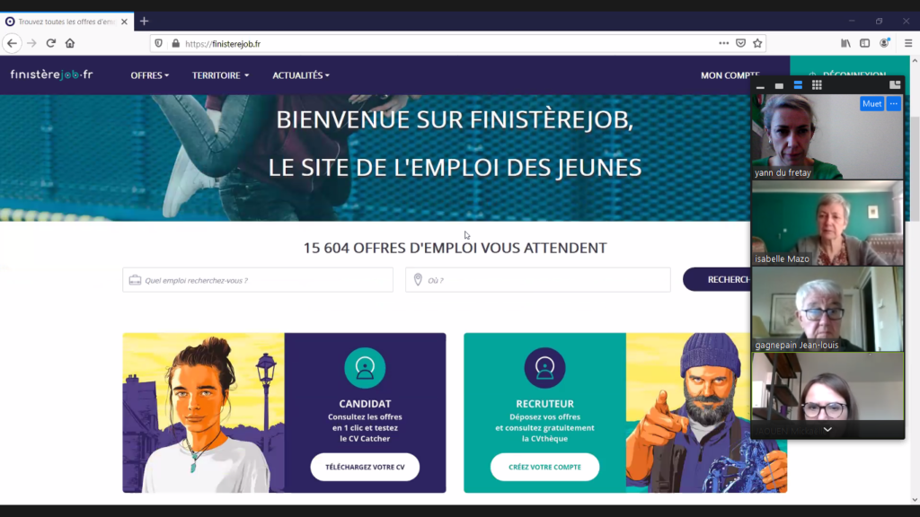 Premier Lundi d’AJE, le 25 janvier pour les membres et adhérents à l’association.Nous nous sommes retrouvés en visioconférence pour ce rendez-vous qui aborde les thématiques de la jeunesse, de l’emploi et de l’entreprise.Dans un premier temps Mickaëlle Jaouen, chargée de mission Insertion des Jeunes et Economie Sociale et Solidaire, Conseil Départemental du Finistère nous a présenté la nouvelle plateforme dédiée à l’emploi des jeunes. Le Conseil Départemental du Finistère est compétent sur l’insertion et accompagne les jeunes Finistérien(ne)s, de la petite enfance jusqu’à l’âge adulte. L’insertion professionnelle des 18-25 ans est une préoccupation forte de la population et le Conseil départemental s’y emploie. FinistèreJob Daniel Sommer, bénévole de l’association est intervenu sur l’actualité des collégiens, lycéens et étudiants : Les examens Parcourssup Du côté des jeunes, du côté des entreprises Son diaporama est disponible sur simple demande à contact@aje29.bzh