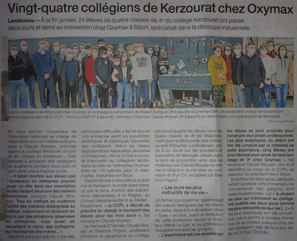 Article de Ouest France, janvier 2021