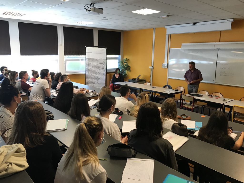 Mardi 8 septembre 2020, les étudiants de deuxième année de BTS Commerce international ont pu bénéficier des précieux conseils de M. Daniel Sommer, bénévole à l’association Jeunesse et Entreprises du Finistère. Il a expliqué aux étudiants comment optimiser leur recherche de stage en soulignant l’importance des compétences et de la motivation ; Mieux se connaître, valoriser ses expériences professionnelles ou personnelles dans le but mieux définir son Projet Professionnel Personnalisé, tels sont les objectifs des outils présentés par M. Sommer Une seconde intervention est prévue au second semestre pour un travail en petits groupes sur l’entretien d’embauche. Un grand merci à M. Sommer. Article de Mme L’Arvor-Marc, Professeure référent des TS2CI