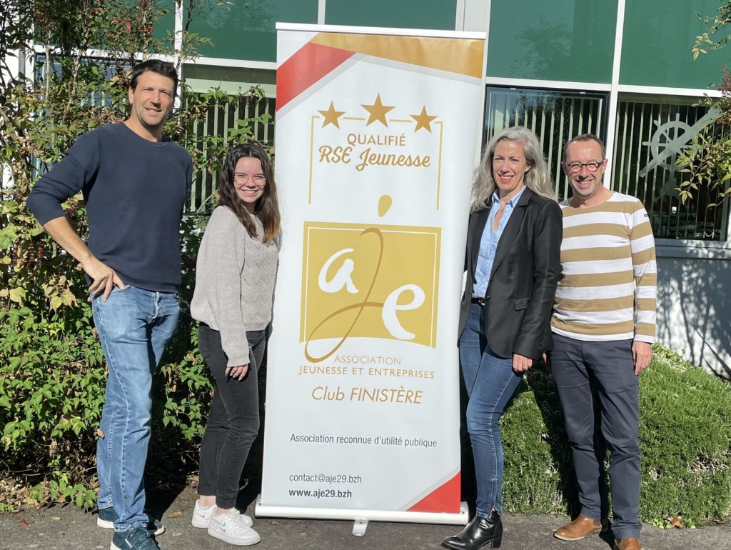 La team AJE Finistère Association Jeunesse Entreprises (innovation, projets et développement) au complet au siège de l’association à Quimper.De gauche à droite sur la photo, Matthieu Bellanger, Logann Cariou (Assistante de gestion) Magali Penven (Déléguée Départementale) et David Jamin (Animation de la Production).Grâce à ses nombreux partenaires, l’équipe de permanents met en relation les jeunes des établissements scolaires du territoire avec les nombreuses entreprises dynamiques qui ont à coeur de partager leurs expériences professionnelles Retrouvez toutes les infos par mail à contact@aje29.bzh