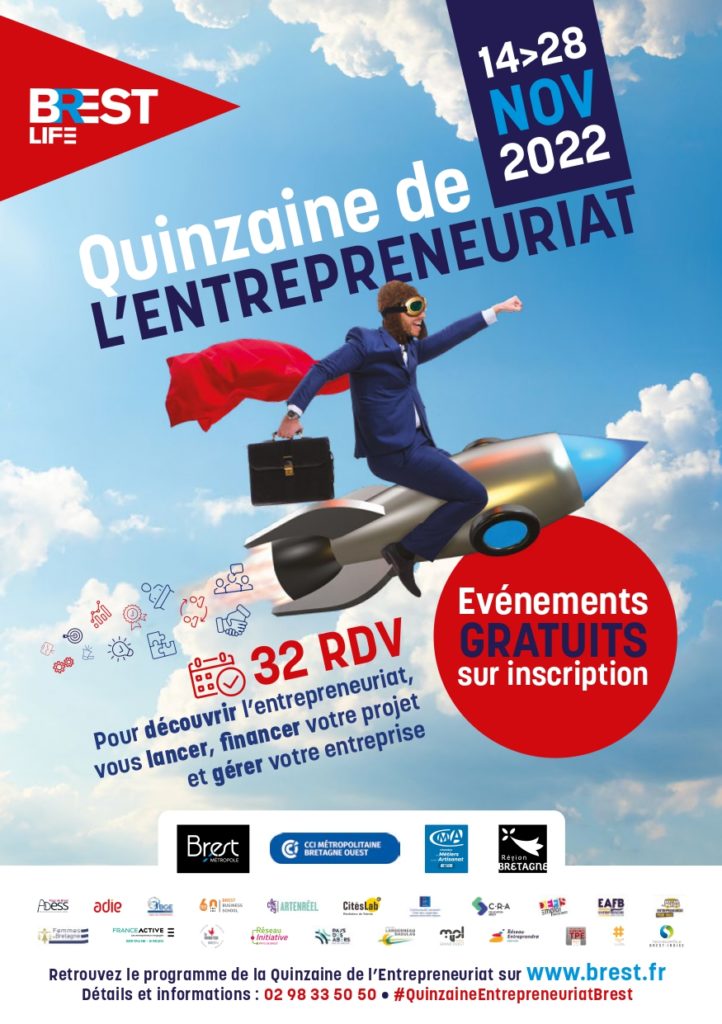 Brest Métropole organise organise la Quinzaine de l’Entrepreneuriat du 14 au 28 novembre, avec de multiples événements (ateliers, conférences, tables rondes) sur tout le Pays de Brest, pour aider les créateurs / repreneurs d’entreprise.N’hésitez pas à vous inscrire !Plus d’information avec ce lien