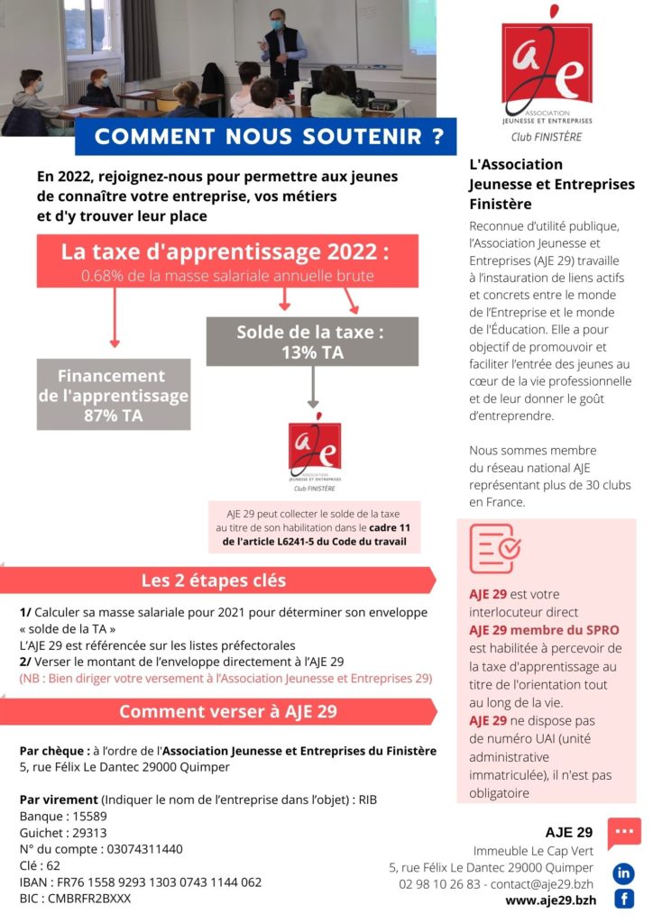 Participez et soutenez la relation École Entreprise avec l’AJE 29