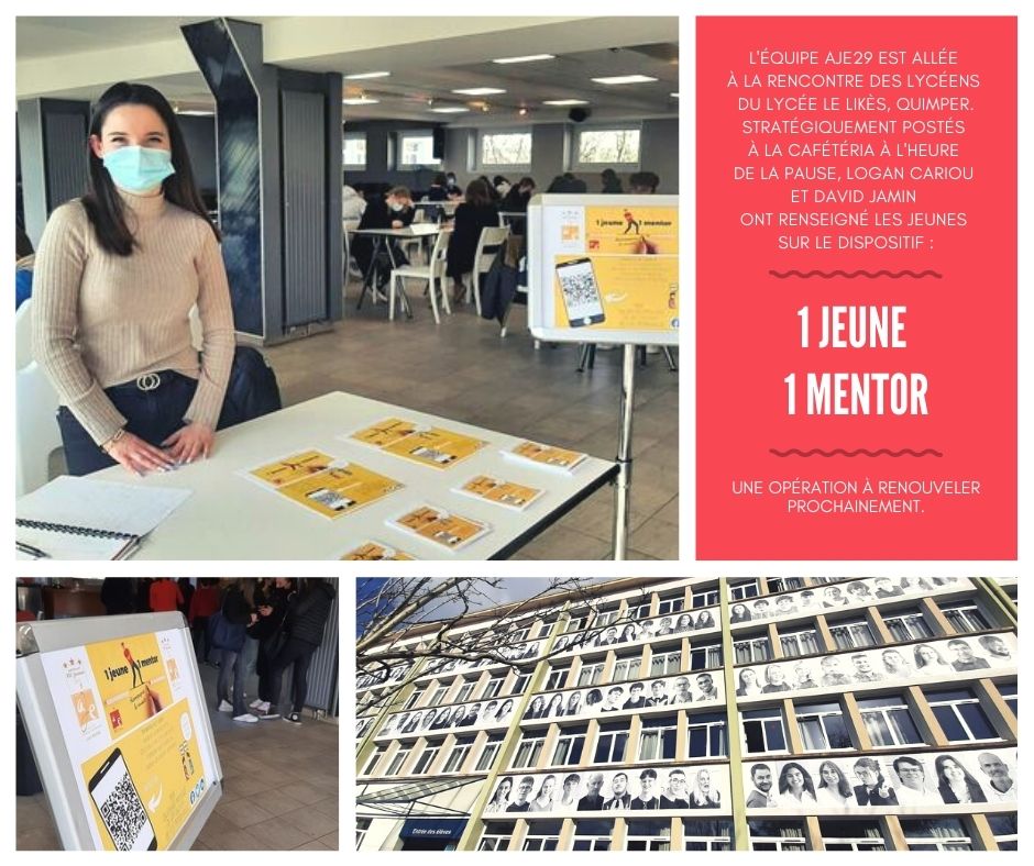 Jeunesse et Entreprises (AJE) s’engage dans l’opération « 1 jeune 1 mentor »« 1 jeune 1 mentor » est un dispositif gouvernemental qui permet à des mentors de s’engager pouraider les jeunes à mieux connaître le monde professionnel, à avoir confiance en eux, à développer leurstalents, à travailler sur leur projet d’orientation et leur savoir-être. Les inscriptions se font sur les liens suivants :– Inscription des mentors : https://docs.google.com/forms/d/e/1FAIpQLScqk7phwgyBOeFpOfusHFCI7e78OvLfNFrTO3EP-UuTDtzNYQ/viewform– Inscription des mentorés :https://docs.google.com/forms/d/e/1FAIpQLScriUVJGSWRBuqIRSydi1QI2TNBm-whuIvdpKjxBZSBOVBP-w/viewformIl est obligatoire de s’inscrire pour s’engager dans l’opération.