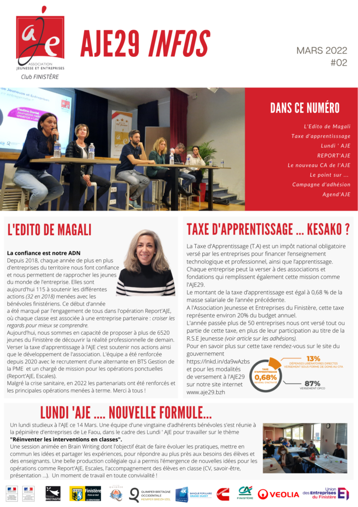 Toutes les dernières infos de l’AJE29 sont ici ! Pour recevoir les prochaines infos abonnez vous à la Newsletter