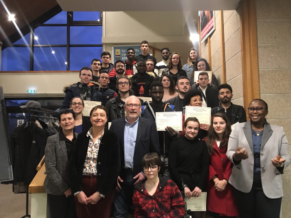 Chaque année, le Conseil départemental du Finistère accueille la cérémonie de la valorisation des filières professionnelles à l’occasion de laquelle sont récompensés de nombreux élèves issus de CAP, BEP et Bacs Professionnels. Ces exemples de parcours remarquables et méritants mettent en évidence des personnalités, des filières et des insertions professionnelles. Près de 100 jeunes ont participé à la cérémonie de remise des prix ce lundi 27 janvier 2020. Voici les lauréats : GANDEGA Makan, CAP préparation et réalisation d’ouvrages électriques, Lycée professionnel La Croix Rouge NICOLAS Gurvan, BAC professionnel métiers de la mode et du vêtement, Lycée professionnel La Croix Rouge CADIEU Maxine, BAC professionnel commerce, Lycée professionnel La Croix Rouge SANGARE Adamo, CAP réparation des carrosseries, IFAC VALVERDE Sonia, CAP agent polyvalent de restauration, IFAC BARBERO Matéo, BAC professionnel cuisine, Lycée des métiers Estran Fénelon ROUVIER Bénédicte, BAC professionnel commercialisation et services en restauration, Lycée des métiers Estran Fénelon MEZOU Amélie, BAC professionnel accompagnement, soins et services à la personne – option structure, Lycée des métiers Estran Fénelon PERES Angéline, BAC professionnel accompagnement, soins et services à la personne – option structure, Lycée des métiers Estran Fénelon RUNARVOT Maël, BAC professionnel accompagnement, soins et services à la personne – option domicile, Lycée des métiers Estran Fénelon LE GOFF Simon, BAC professionnel aménagements paysagers, CFA LE BIAN Marion, BPA travaux des productions horticoles, CFA ROBIN Baptiste, CAP travaux paysagers, CFA NABIYAR SHERZAY Faysal, BAC professionnel commerce, Lycée Roz glas LEBERQUIER Elise, CAP assistant technique en milieu familial et collectif, Lycée Roz glas BREGEARD Cédryc, BAC professionnel maintenance des véhicules – option C – motocycles, Lycée Roz glas BAYO Adboulaye, BAC professionnel métiers de l’électricité et de ses environnements connectés, Lycée Vauban CORDON Julian, BAC professionnel métiers de l’électricité et de ses environnements connectés, Lycée Vauban BRUERRE Mathys, BAC professionnel Maintenance des Véhicules option A – voitures particulières, Lycée Vauban ROSTREN Aelaig, BAC professionnel logistique, Lycée des Métiers Saint Gabriel LE HECHO Bastien, BAC professionnel conducteur transport routier de marchandises, Lycée des Métiers Saint-Gabriel MOREAU Lucy, BAC professionnel maintenant des véhicules – option A – véhicules particuliers, Lycée des Métiers Saint-Gabriel JACQ Pierre, BAC professionnel technicien étude du bâtiment, Lycée Dupy de Lôme KERRENEUR Nicolas, CAP peintre applicateur de revêtements, Lycée Dupuy de Lôme LE VIOL Claire, BAC professionnel maintenance des véhicules option A – véhicules particuliers, CFA JAFFRE Cindy, Brevet technique des métiers pâtissier, CFA GERIN-MOALLIC Stéphanie, CAP boulanger, CFA COQUET Robin, CAP maçon, Bâtiment CFA HEMEDY Marion, CAP couvreur, Bâtiment CFA DOUCOURE Mamadou, CAP platrier plaquiste, Bâtiment CFA CANAFF Brendan, BAC professionnel système numérique, Lycée Yves Thépot LE GUEN Malo, BAC professionnel technicien en chaudronnerie industrielle, Lycée Yves Thépot PLOUZENNEC Justin, BAC professionnel étude et définition de produits industriels, Lycée Yves Thépot LE SOLLIEC Hugo, BAC professionnel vente, Lycée professionnel Chaptal PREMIER Rebecca, BAC professionnel commercialisation et services en restauration, Lycée professionnel Chaptal KEROULLAS Gurvan, BAC professionnel gestion administration, Lycée professionnel Chaptal GESTIN Brendan, BAC professionnel accueil – relation clients et usagers, Lycée Javouhey GRALL Maëlys, BAC professionnel gestion administration, Lycée Javouhey EDERIQUE MAZE Anne-Gabreille, BAC professionnel commerce, Lycée Javouhey FRANCFORT Manon, CAP assistant technique en milieu familial et collectif, Lycée professionnel St-Elisabeth LE JEUNE Manon, BAC professionnel accompagnement, soins et services à la personne – option structure, Lycée professionnel St-Elisabeth ORHON Gurvan, BAC professionnel technicien d’usinage, Le Likès SEZNEC Coline, BAC professionnel commerce, Le Likès DONNART Thomas, BAC professionnel maintenance des équipements électriques et de ses environnements connectés, Le Likès BERNARD Auriane, BAC professionnel technicien en étude du bâtiment option architecte, Le Likès RAOUL JEANNES Clémence, BAC professionnel gestion administration, Le Likès UL QAMAR Jabran, CAP réparation des carrosseries, Lycée des Métiers GUBAN Giovanny, CAP réparation des carrosseries, Lycée des Métiers
